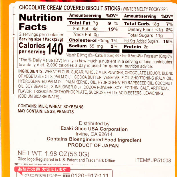 This flavor is a winter exclusive! The name, fuyu no kuchidoke means winter melt and hints at the lovely texture of the chocolate that melts-in-the-mouth as you savor each bite. These special chocolate Pocky also has a dusting of rich cocoa powder for a more chocolatey flavor.
