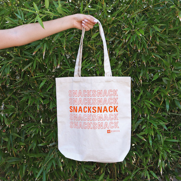 Show the world how much you love Japanese snacks with our "Snack" tote bag. Its cute design features a natural canvas base and our signature orange color. Reusable, and made from a medium weight fabric for long-lasting quality.