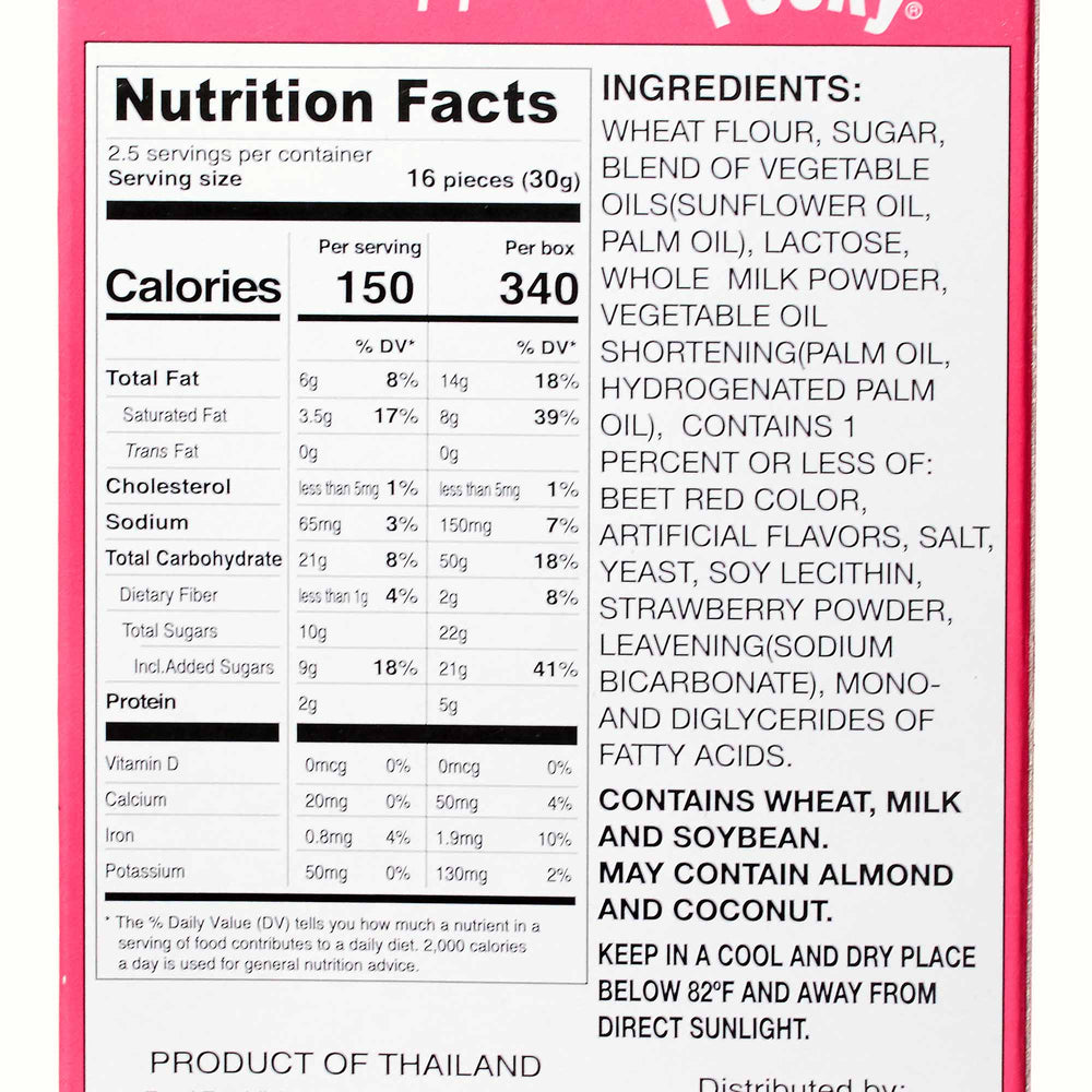 A nutrition label for a box of Glico Pocky: Strawberry.