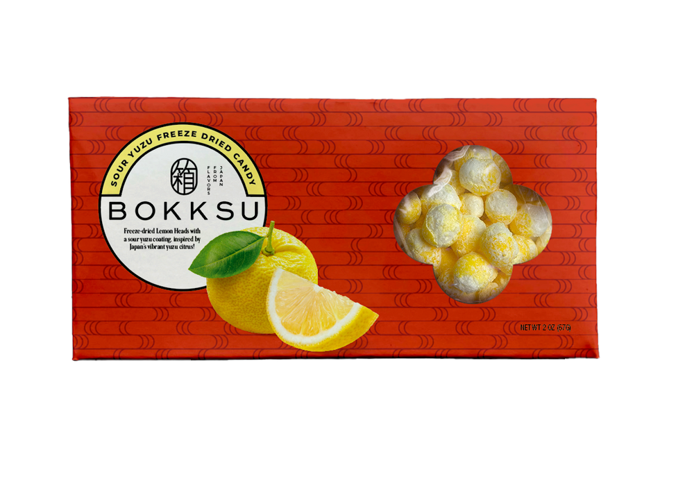 The Sour Yuzu Candy Bites pair a freeze-dried lemon candy base with a bold yuzu coating, delivering sharp citrus flavor and fragrant tartness in every bite.
