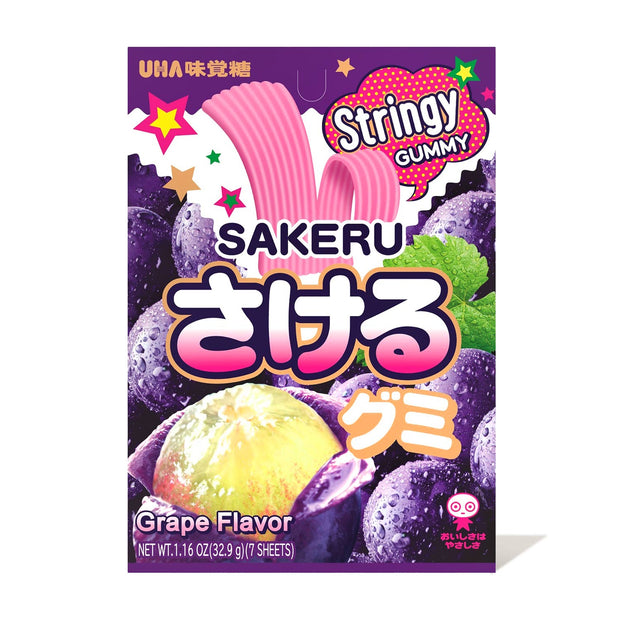 With a juicy grape flavor in every bite, this Uha Sakeru Gummy candy will be your new go-to! This peelable candy is meant to be eaten strip by strip for a longer amount of enjoyment. Enjoy this chewy gummy with loved ones or solo!